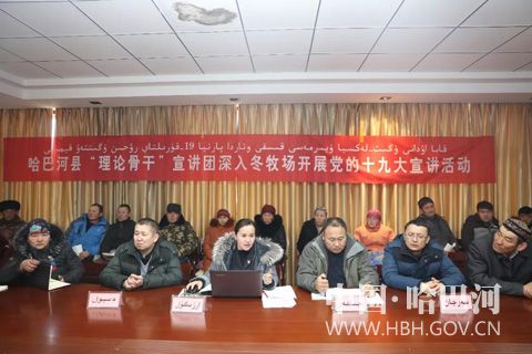 为深入学习宣传贯彻党的十九大精神,12月15日,哈巴河县“理论骨干”党的十九大精神宣讲团进冬牧场宣讲,打通最后一公里,服务最远一家人,为牧区群众提供了面对面宣讲服务。