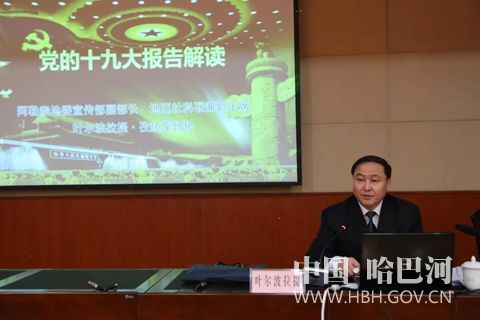 12月21日上午,地区“党的十九大精神”宣讲团赴哈巴河县开展宣讲。此次宣讲报告会分为汉语和哈萨克语两个会场同步进行,分别由地委宣传部副部长、地区社科联兼职主席叶尔波拉提·孜热库玛热和地区第一高级中学校长阿依登·阿肯别克作专题宣讲报告。县四套班子在家领导,县直单位(部门)机关干部、乡(镇)党政主要领导、“访惠聚”驻村工作队队长、宣讲骨干和草根宣讲员代表等200余人聆听了宣讲报告会。