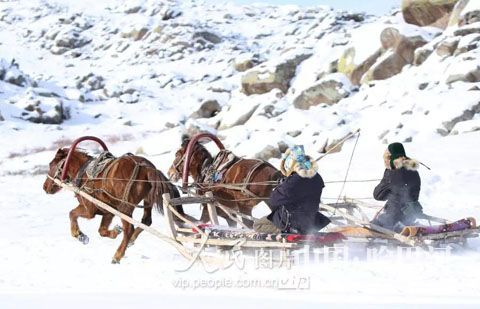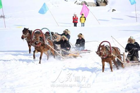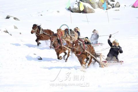 2017年12月27日,新疆哈巴河县萨尔布拉克镇喀拉翁格村的村民正在开展马拉爬犁比赛。喀拉翁格是哈巴河县的一个行政村,距离县城以北60公里,是哈龙沟景区的核心区。在2018年元旦即将到来之际,包村干部、驻村工作队会同村“两委”班子结合当地冰雪资源丰富的实际开展了一系列群众文化体育活动,迎接新年的到来。