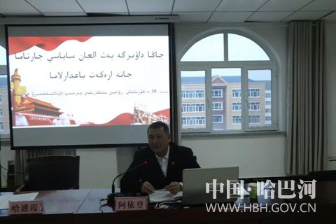 12月21日上午,地区“党的十九大精神”宣讲团赴哈巴河县开展宣讲。此次宣讲报告会分为汉语和哈萨克语两个会场同步进行,分别由地委宣传部副部长、地区社科联兼职主席叶尔波拉提·孜热库玛热和地区第一高级中学校长阿依登·阿肯别克作专题宣讲报告。县四套班子在家领导,县直单位(部门)机关干部、乡(镇)党政主要领导、“访惠聚”驻村工作队队长、宣讲骨干和草根宣讲员代表等200余人聆听了宣讲报告会。