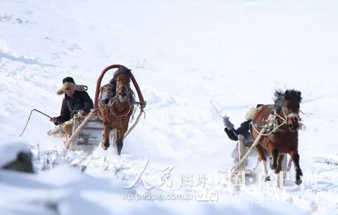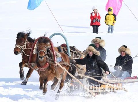 2017年12月27日,新疆哈巴河县萨尔布拉克镇喀拉翁格村的村民正在开展马拉爬犁比赛。喀拉翁格是哈巴河县的一个行政村,距离县城以北60公里,是哈龙沟景区的核心区。在2018年元旦即将到来之际,包村干部、驻村工作队会同村“两委”班子结合当地冰雪资源丰富的实际开展了一系列群众文化体育活动,迎接新年的到来。