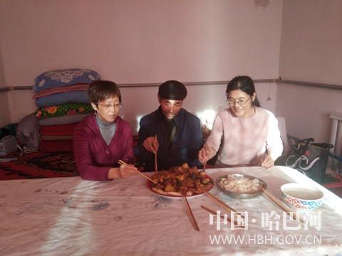 哈巴河县的冬天,寒风凛冽,为积极响应民族团结“结亲周”活动,我带着行李、食品、蔬菜和生活用品前去萨尔塔木乡哈布哈滩村阿里汗家。