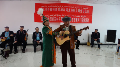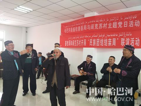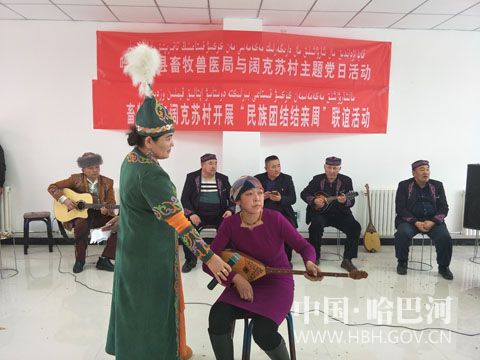 活动中,第三批结亲干部特邀请的“杰特哈巴”音乐队为亲戚们带来了冬不拉独奏、乐器合奏、弹唱、独唱、个人编曲等形式多样的精彩演出,其中《共产党》《美丽的草原》《我们是牧民》等丰富多彩的节目赢得了在场观众们的喜爱。伴着欢快的音乐声,干部与亲戚、村民们一起跳舞、一起欢笑,现场一片其乐融融。