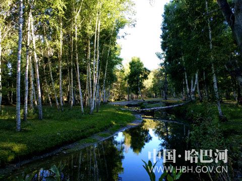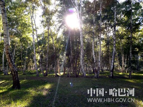 走进白桦林,清新的空气扑鼻而来,天空中流动着云朵与蓝天交相辉映,林中绿草如茵,野花点缀,蜂飞蝶舞,林中流淌着一条静谧的小溪,小溪上搭起了木桥,被一棵棵亭亭玉立的白桦树围绕着,放眼望去,犹如一幅画卷铺开。徜徉在白桦林中,感受大自然原始的清新自然,心旷神怡。