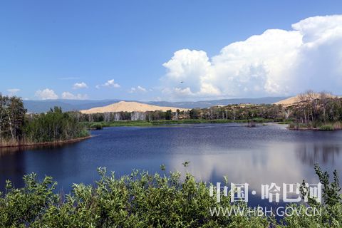 白沙湖景区包括哈巴河县185团境内的白沙湖、鸣沙山、西北第一连等景点,距离县城108公里。白沙湖是被沙丘环绕的沙漠小湖,其湖心、湖岸、湖周围生长着高大茂密的混生林带和密密丛丛的芦苇。每年6月,湖面绽开朵朵荷花,一派江南水乡的风韵。