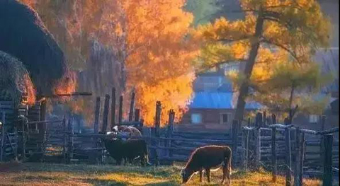 白色的毡房,人字木屋,金色草墩,彩色秋林,热情淳朴的图瓦人,炊烟繁星,淡黄的落叶,肆意的金色把这个边境小村包裹着,宛若金色的童话世界。