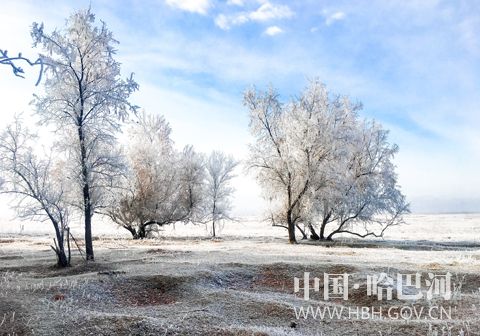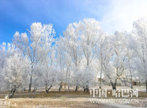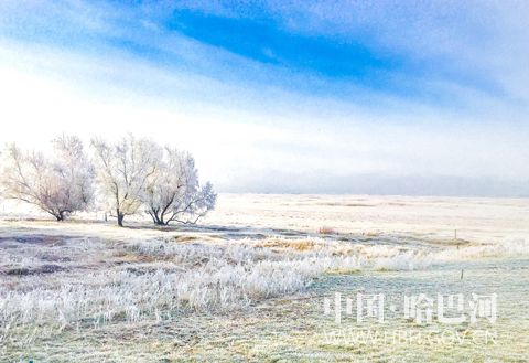 12月4日,新疆阿勒泰地区哈巴河县出现雾凇景观。近日,受降雪降温天气影响,哈巴河县白桦林出现雾凇景观,雾凇附着在草木丛林间,晶莹剔透,玉树琼花,形成一幅幅精美绝伦的画卷。