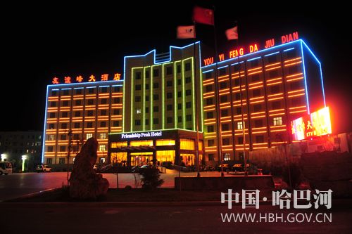 哈巴河友谊峰大酒店始建于2008年,并于2009年7月8日正式营业。是本地目前规模最大、档次最高的集住宿、餐饮、娱乐、会议、商务、旅游服务为一体的酒店。酒店占地约10000平方米,其中包括3780平米的停车场和喷泉、后花园等。