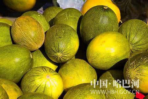 吐鲁番的哈密瓜大多为哈密瓜中的精品,呈长卵形,皮色鹅黄透红,网纹细密全,外观诱人,肉色浅桔,肉质细松脆、蜜甜微香。