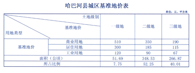 哈巴河县城区基准地价表